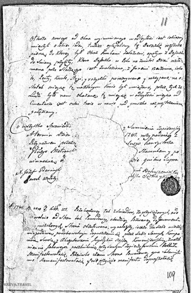 Раніцай крэўскія жыхары кінуліся ў пагоню. Падчас начнога ўзлому на вільготнай пасля дажджу зямлі каля царквы засталіся глыбокія сляды. Сведкі апісалі іх як адбіткі ад “нямецкіх ботаў”. Гэта было стоадсоткавым маркерам таго, што тут хадзіў нехта не з мясцовых і не з простых людзей, а чалавек шляхецкага ці духоўнага саслоўя, які апранаўся па гарадской заходняй модзе.